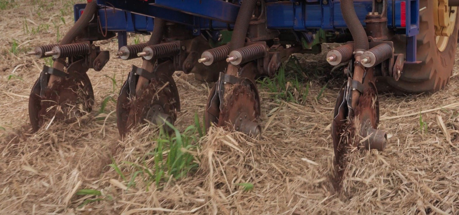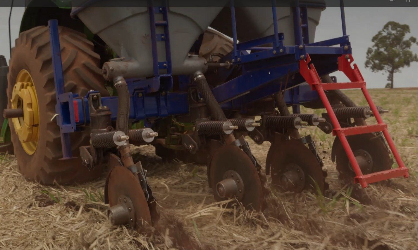 Equipamento agrícola fertilizador com discos duplos desencontrados para incorporação profunda. Maximização da absorção radicular e eliminação de perdas.